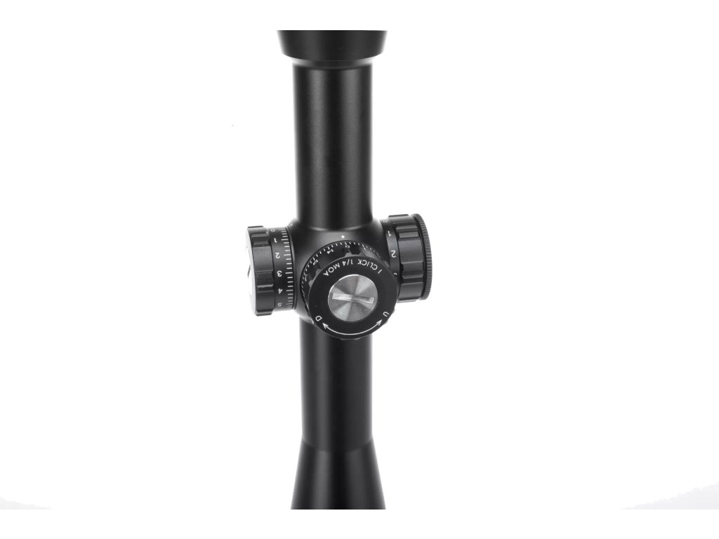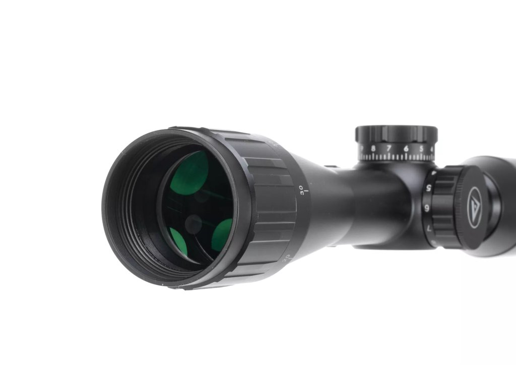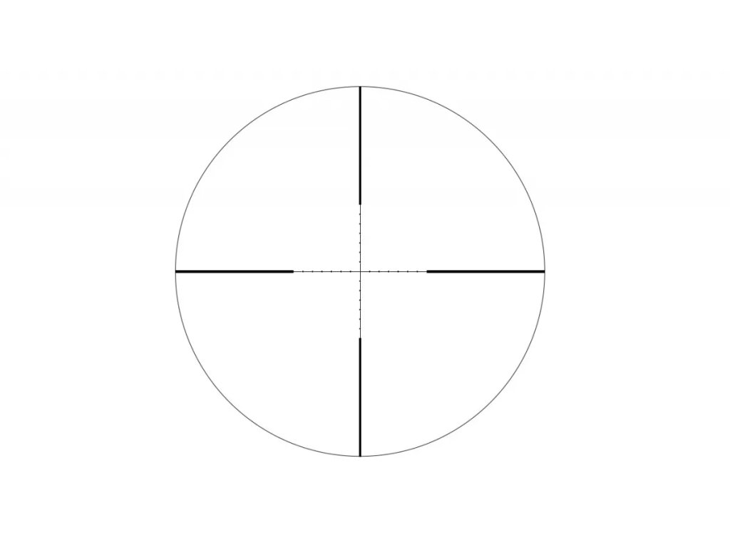 Záměrný kříž typu MIL-DOT je umístěný ve druhé ohniskové rovině, takže při míření zůstává neměnný. Kříž lze navíc podsvítit červeným světlem v 12 úrovních intenzity, což oceníte při snížené viditelnosti nebo střelbě v šeru.
