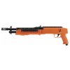 T4E HDX68 je pumpovací brokovnice s oranžovým designem, poháněná dvěma bombičkami CO2, střelba Rubber Ball kalibru .68, 16 ran, výkon až 16J.